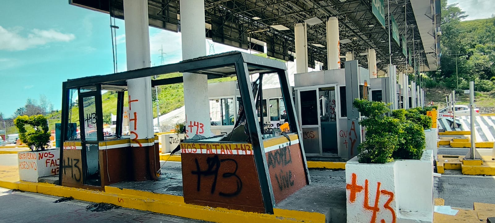 Estudiantes de la normal de Ayotzinapa causaron destrozos en la caseta de palo blanco en la autopista del sol éste sábado
