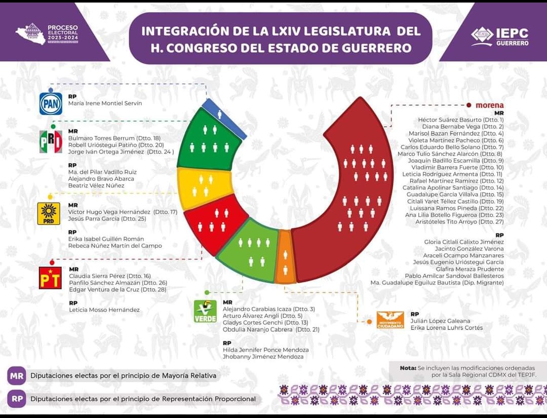 Así queda conformada la LXIV legislatura local de Guerrero, que hoy rinde protesta.
