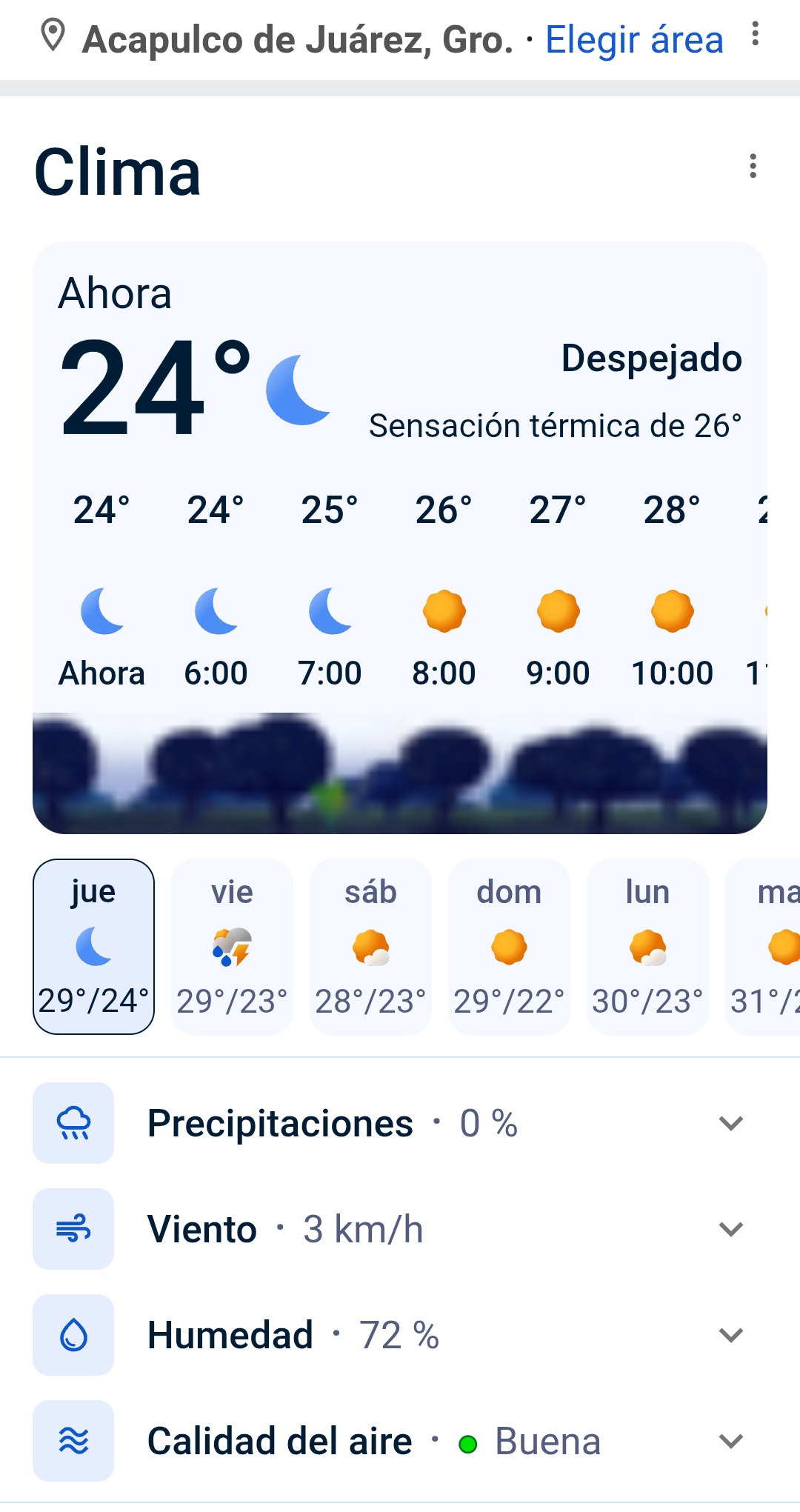 El clima hoy jueves