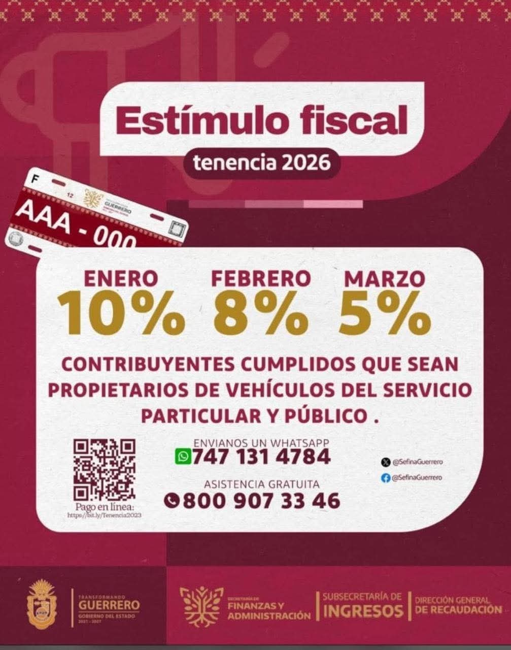 El Gobierno del Estado, que encabeza la gobernadora Evelyn Salgado Pineda, anunció el Estímulo Fiscal Tenencia 2026, dirigido a propietarios de vehículos particulares y de transporte público, con el objetivo…