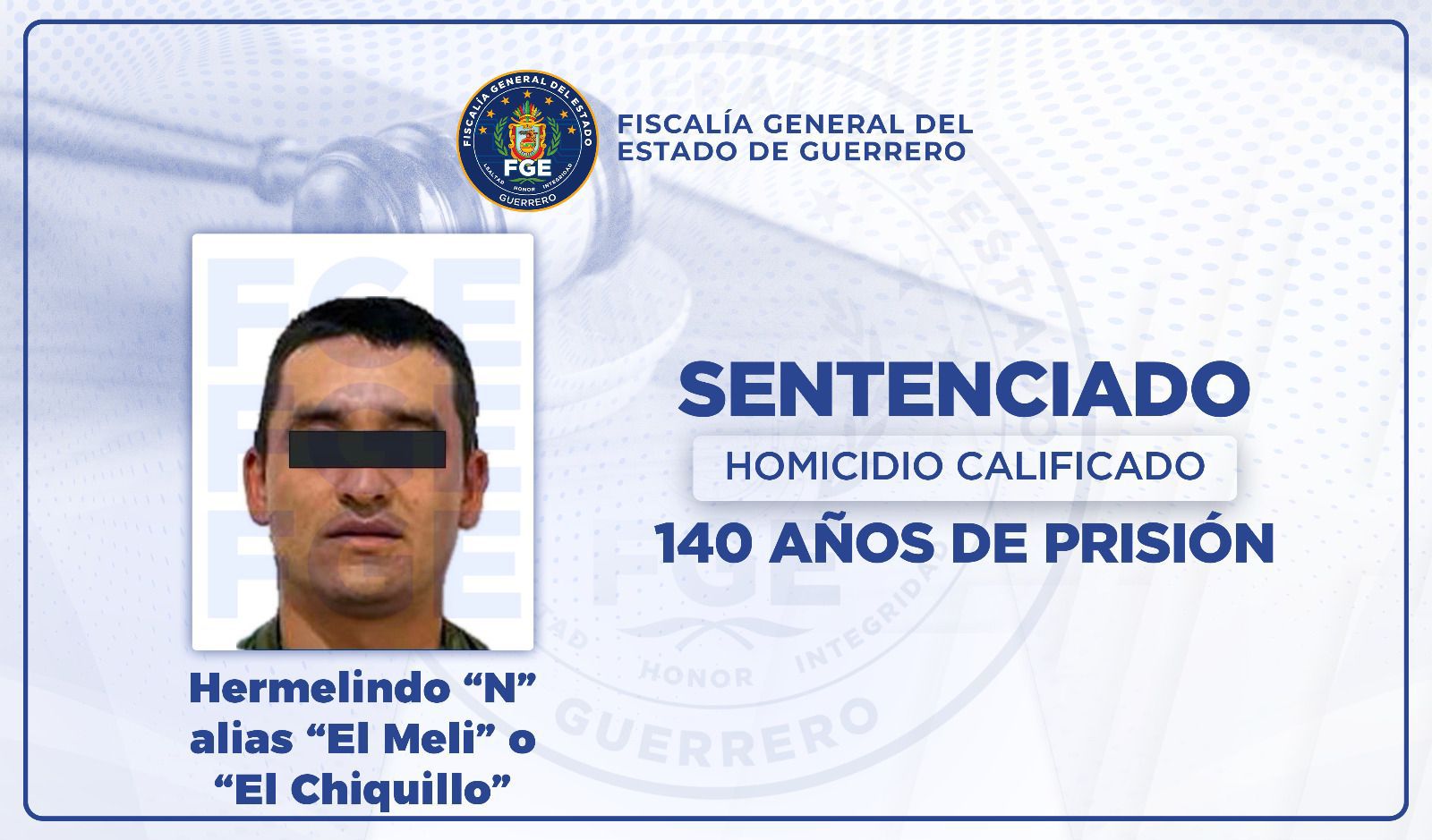 Chilpancingo, Gro, a 22 de julio de 2024.- La Fiscalía General del Estado de Guerrero (FGEGuerrero) logró una sentencia condenatoria por 140 años de prisión en contra de Hermelindo “N”…