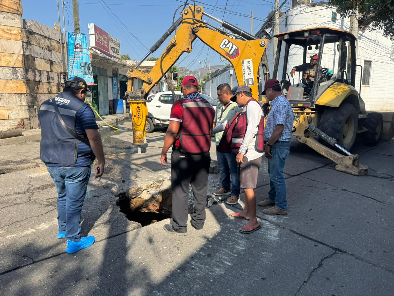 Personal de la Comisión de Agua Potable y Alcantarillado del Municipio de Acapulco (Capama) atiende una fuga en el colector de drenaje sanitario de 36 pulgadas ubicado sobre la calle…