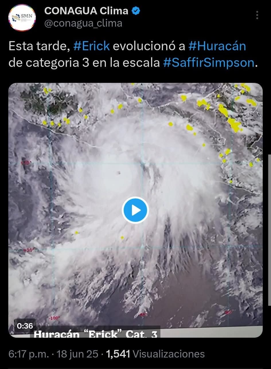 ¡Guerrero en alerta máxima! Huracán Erick sube a categoría 4