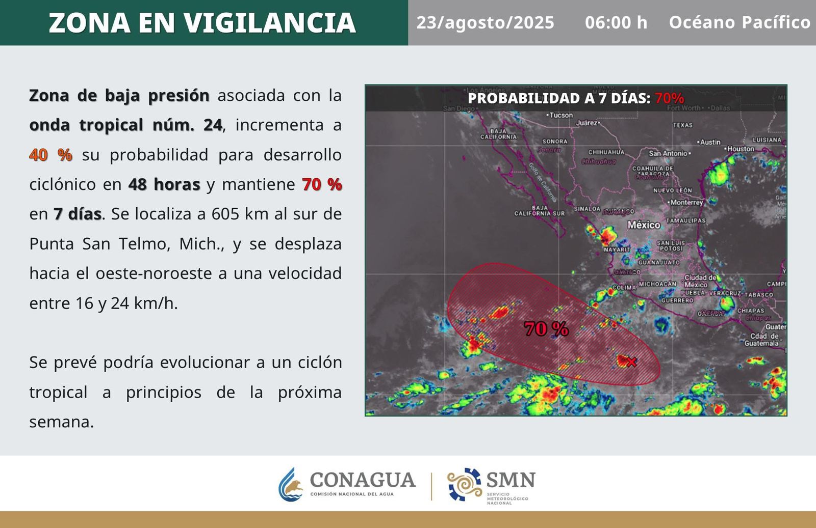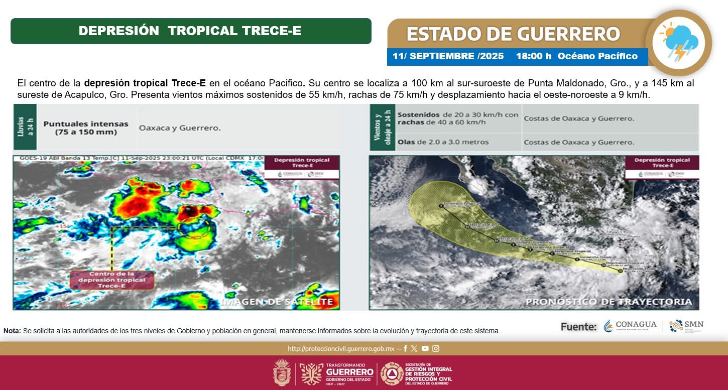 ATENCIÓN. ⚠️ | La Depresión Tropical Trece-E se ha convertido en la Tormenta Tropical “Mario” muy cerca de Zihuatanejo.