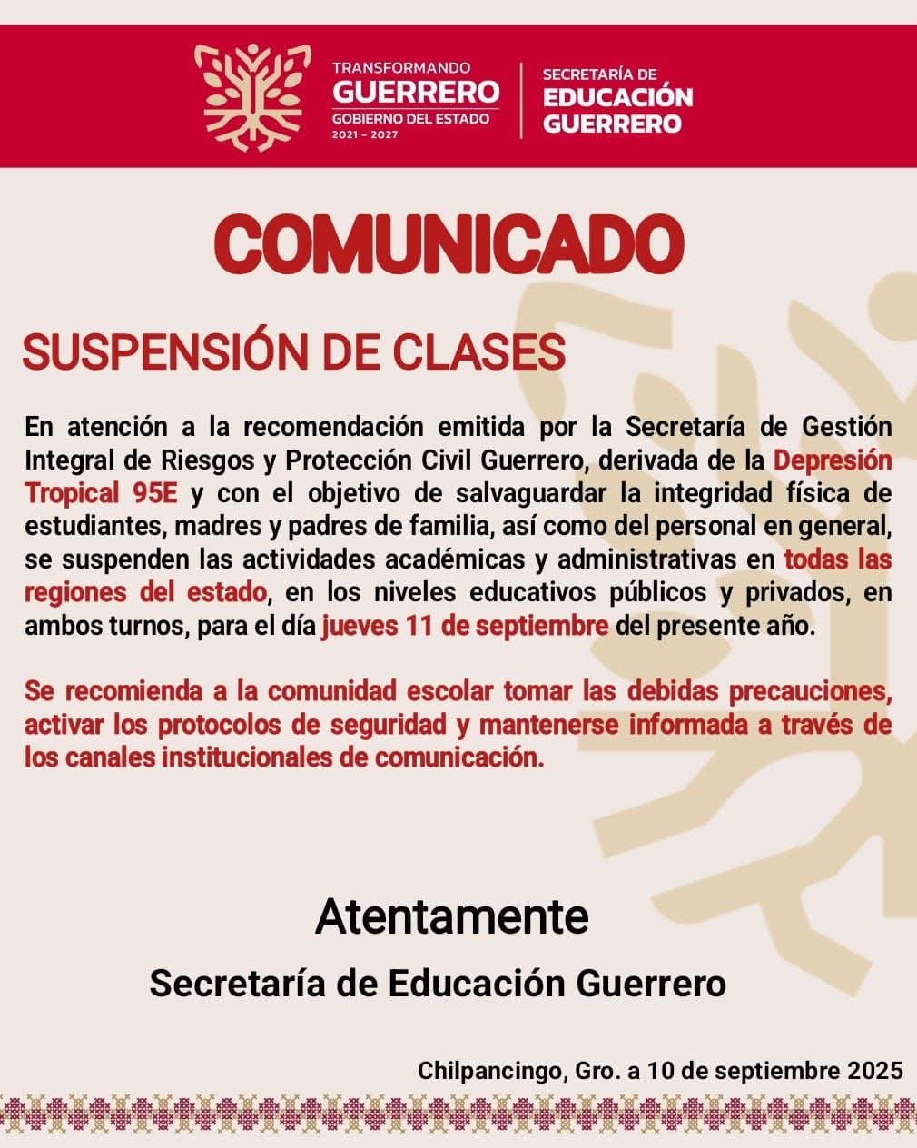 La Depresión Tropical Trece-E se ha convertido en la Tormenta Tropical “Mario” muy cerca de Zihuatanejo. Por la distancia y su veloz desplazamiento ya no representa mayor riesgo para nuestra…