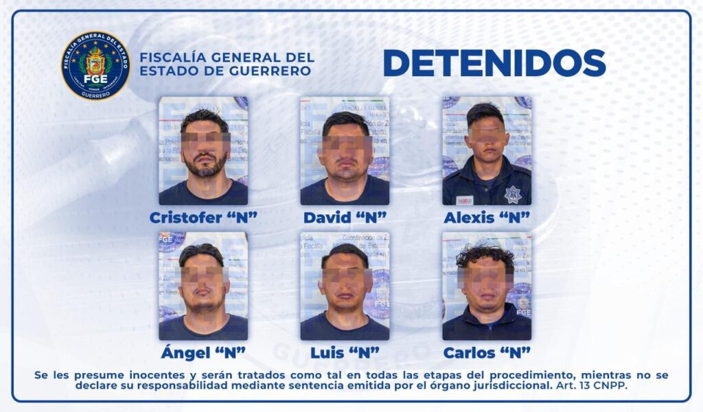 En seguimiento puntual de las investigaciones y derivado de las acciones implementadas, la FGE Guerrero ejecutó, una orden de aprehensión girada por una Juez de Control en contra de los seis policías municipales, procediendo con la presentación de los imputados ante la autoridad correspondiente que los requería.