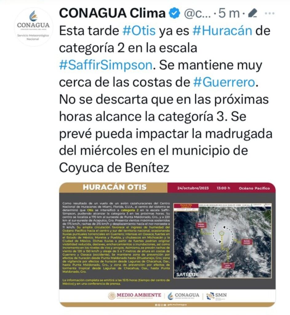 El 24 de octubre se alertaba por el impacto del huracán OTIS, sin duda pocos esperaban que pudiera alcanzar la fuerza destructiva que alcanzó.