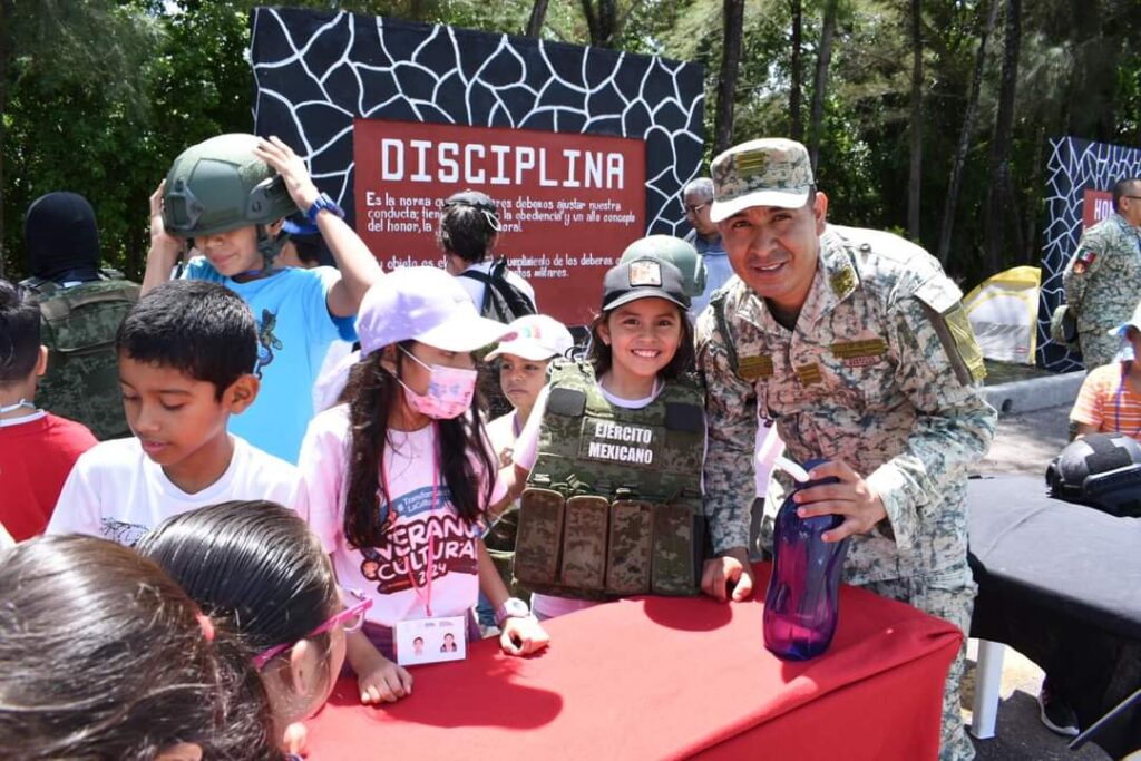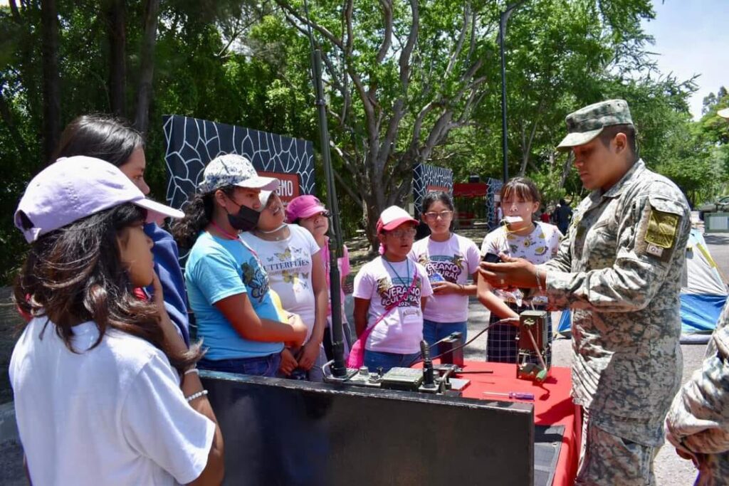 Como primera actividad, personal del Ejército Mexicano adscritos al 50 Batallón de Infantería, dieron la bienvenida a las y los pequeños asistentes; posteriormente, conocieron parte de los vehículos del ejército, el equipo de primeros auxilios y uniformes, observaron el módulo de transmisiones y la demostración de caninos; por último, realizaron un recorrido por los dormitorios, instalaciones, la zona de camping y juegos.