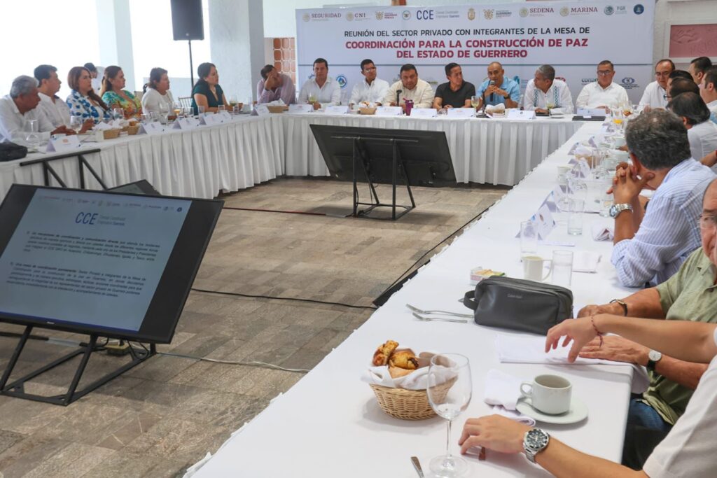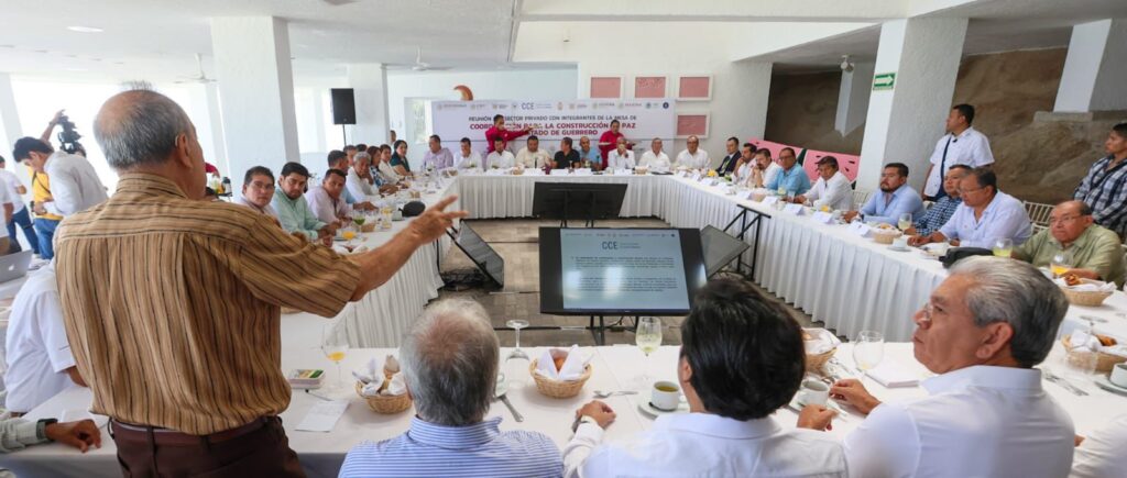 Acapulco, Gro., 08 de agosto de 2024.- Por instrucciones de la gobernadora Evelyn Salgado Pineda y derivado de los acuerdos establecidos de manera previa en la Mesa de Coordinación para la Construcción de Paz, el gobierno de Guerrero a través de la Subsecretaría de Desarrollo Político y Social del estado, sostuvo un diálogo con los integrantes del Consejo Coordinador Empresarial Guerrero, en el que se expusieron diversos planteamientos para coordinar acciones que permitan atender aspectos como seguridad, fomento económico, impulso al turismo y desarrollo en la entidad.