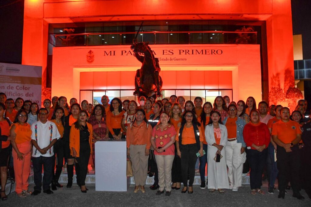 Chilpancingo, Gro., 25 de noviembre del 2024.- Como parte de la conmemoración del Día Internacional de la Eliminación de la Violencia contra la Mujer, la secretaria de la Mujer, Violeta Pino Girón, en representación de la gobernadora, Evelyn Salgado Pineda, encabezó el “Encendido naranja” del Recinto oficial del Poder Ejecutivo, también conocido como Casa del Pueblo.