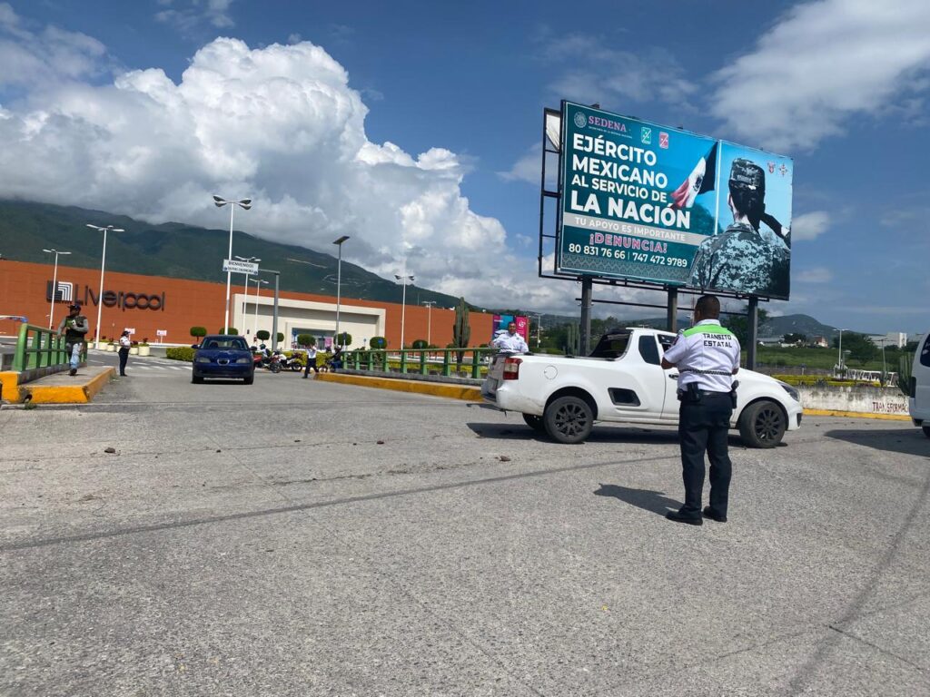 Por instrucciones de la Gobernadora, Evelyn Salgado Pineda, personal de Tránsito de la Secretaría de Seguridad Pública Estatal brinda apoyo vial a la altura del Parador del Marqués en la ciudad de Chilpancingo, ante el bloqueo que mantiene un grupo de personas sobre esa avenida. Esta acción de proximidad tiene como objetivo agilizar la circulación, evitar el congestionamiento vial y atender a los automovilistas.