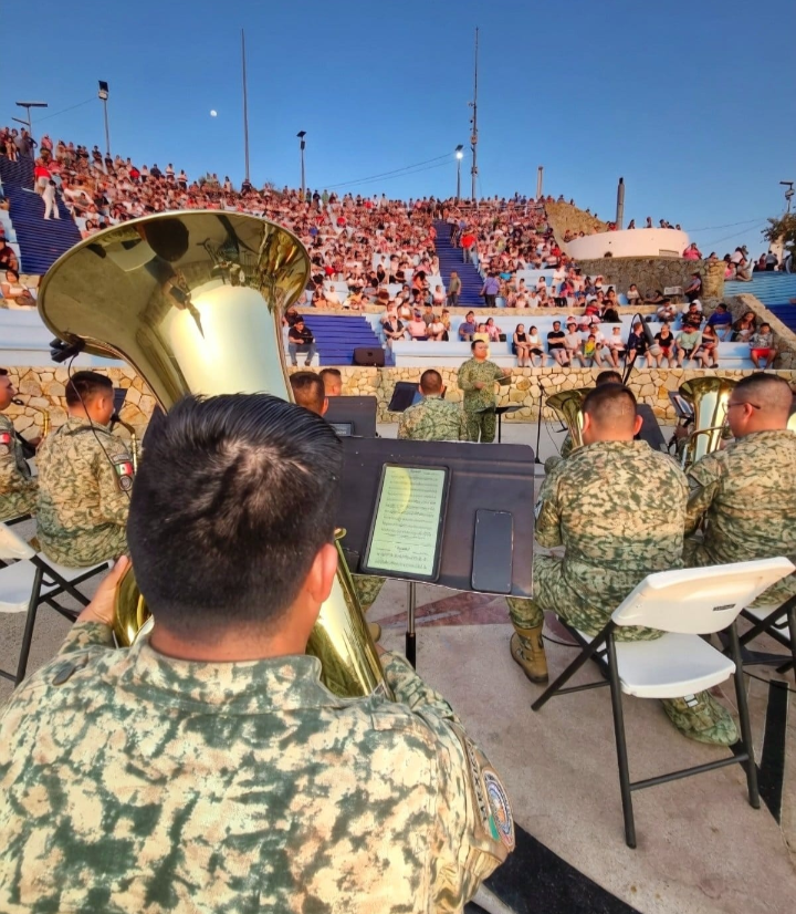 En un escenario lleno de historia y tradición como lo es Sinfonía del Mar, la Banda de Música de la Novena Región Militar ofreció un emotivo concierto que reunió a cerca de mil personas entre familias, jóvenes y visitantes, quienes disfrutaron de una velada musical en un ambiente de armonía y convivencia.