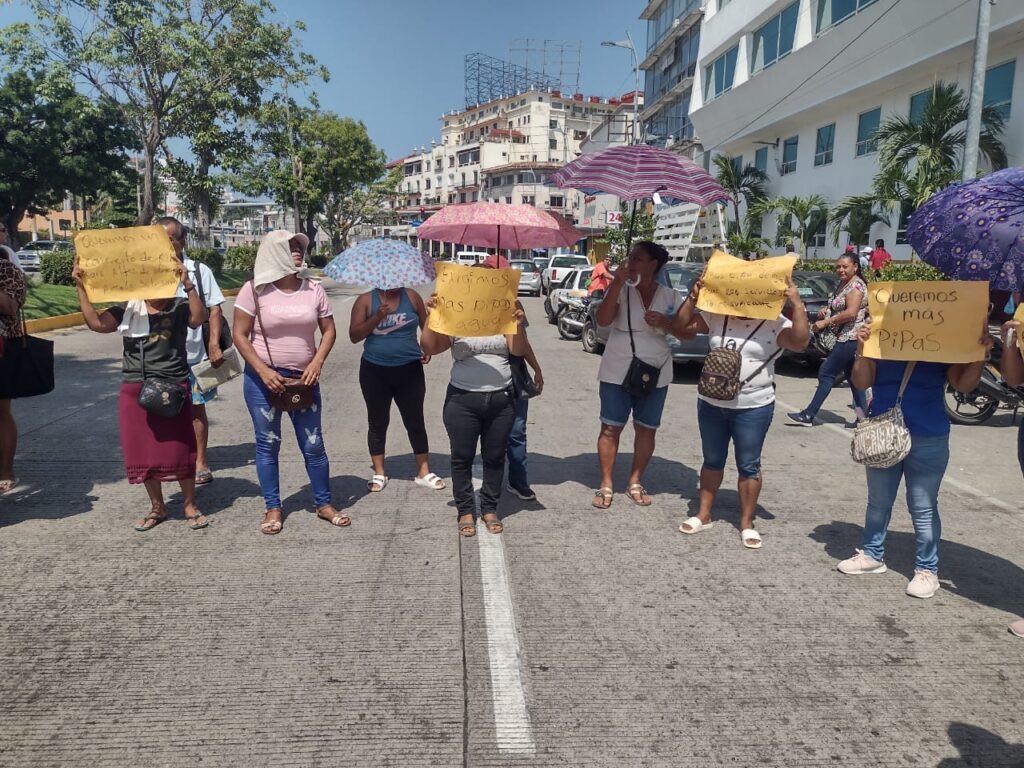 Un grupo de habitantes de la comunidad de Llano Largo y colonias circunvecinas realizan un bloqueo en la Costera Miguel Alemán, frente al Palacio Federal exigiendo la dotación de agua potable.