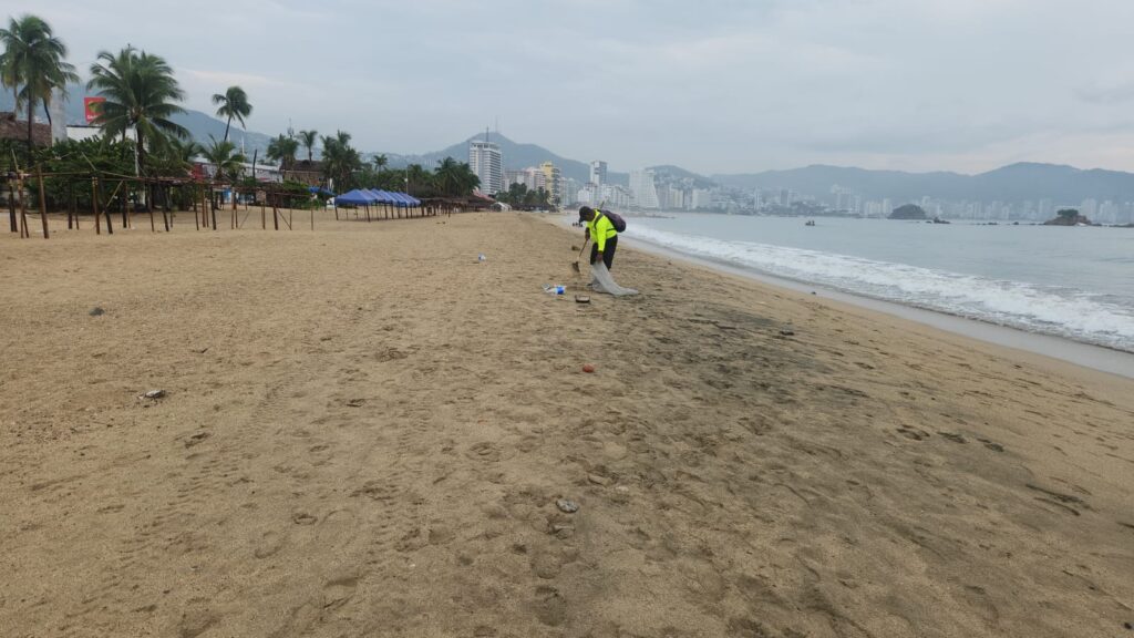 El titular de la dependencia estatal Alfredo Lacunza de la Cruz, dijo que las labores forman parte de las acciones permanente implementadas por la gobernadora Evelyn Salgado Pineda para mantener en optimas condiciones las playas del puerto.