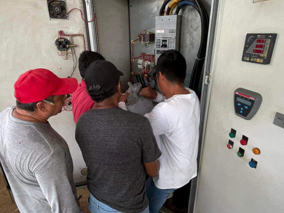 Por otra parte, personal electromecánico de CAPAMA prepara la sustitución de equipos de bombeo y de sus arrancadores, también instala lámparas para la iluminación de crujías, y así poder continuar con los trabajos de desazolve en el interior del cárcamo de bombeo.
