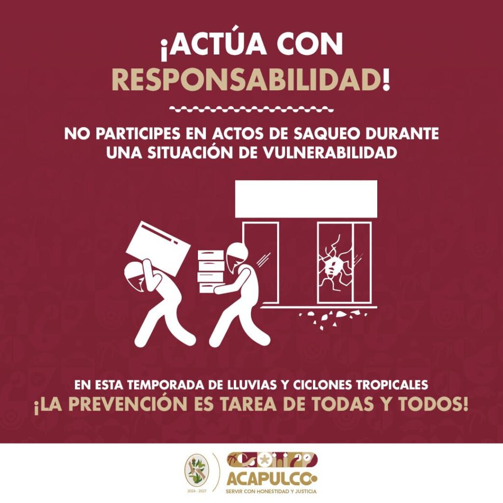 Recuerda que el realizar actos de rapiña en situaciones de desastre o catástrofes, ya se encuentra tipificado como un “delito grave” en el Código Penal del Estado, el cual podría ser castigado hasta con más de 6 años de prisión.