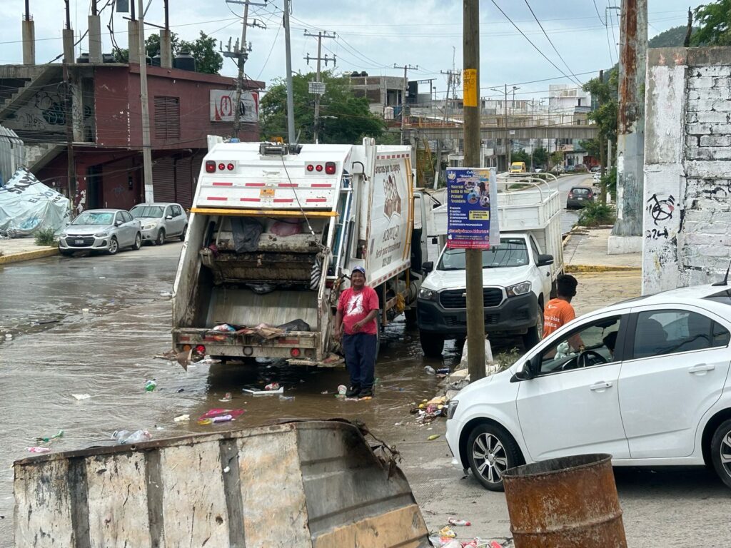 Alrededor de mil 100 toneladas diarias de residuos sólidos recolecta el Gobierno Municipal que preside Abelina López Rodríguez a través de la Dirección de Saneamiento Básico, durante la contingencia tras el paso del huracán “John”.