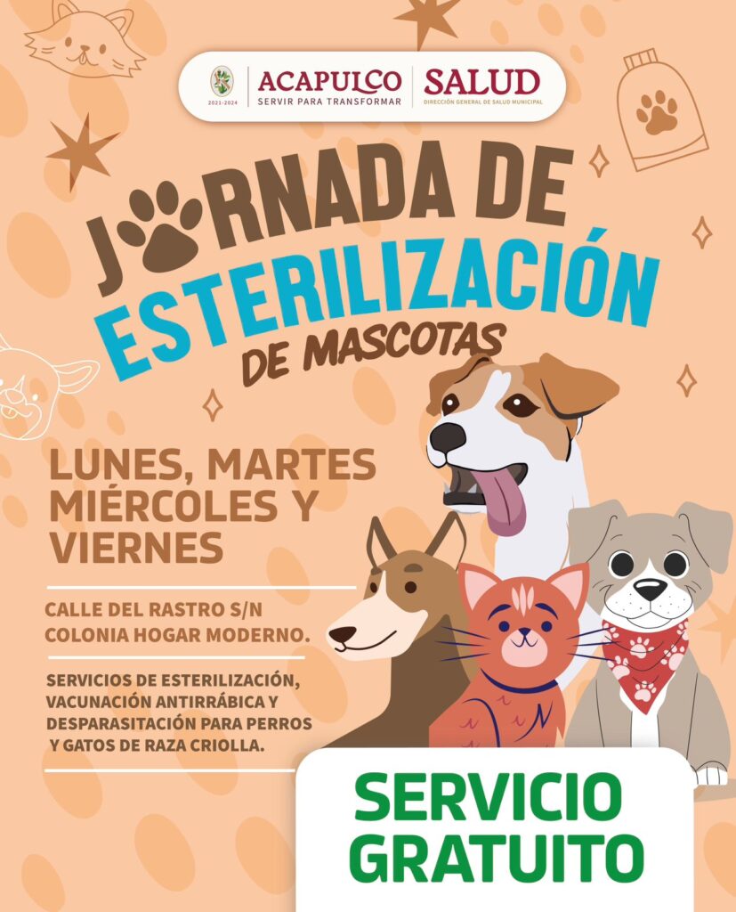 El Gobierno Municipal de Acapulco mantiene de manera permanente su jornada de esterilización para perros y gatos criollos.