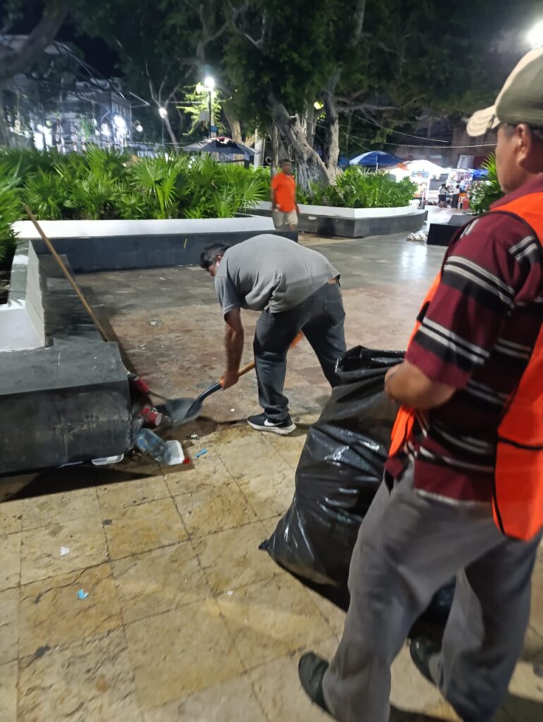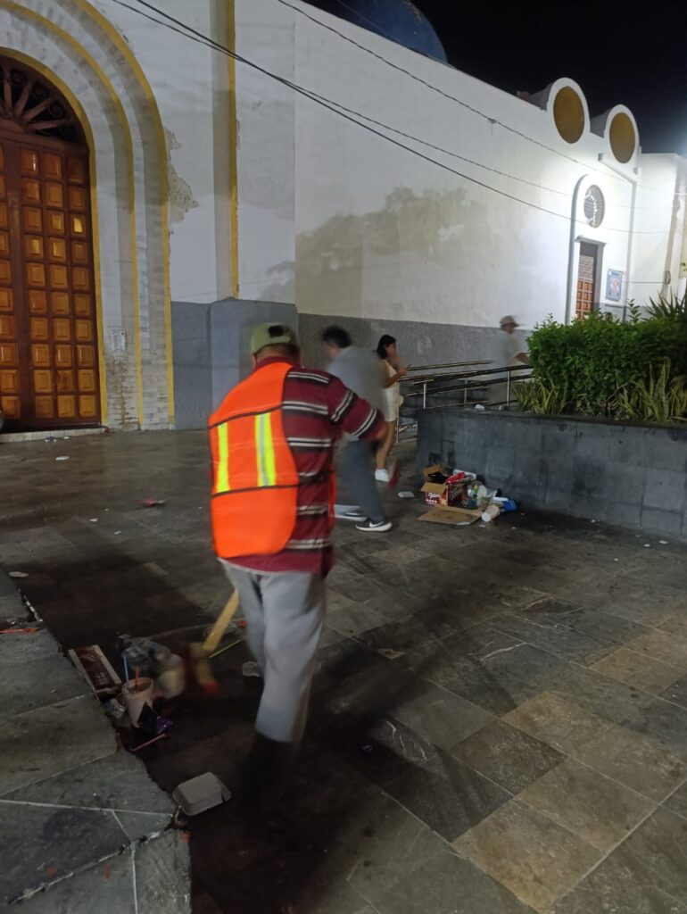 La coordinadora de Servicios Públicos Municipales, Otilia Hinojosa Loza, indicó que se recolectaron dos camiones tipo R de Saneamiento Básico en el zócalo de Acapulco, lo que equivale a 30 toneladas de desechos.