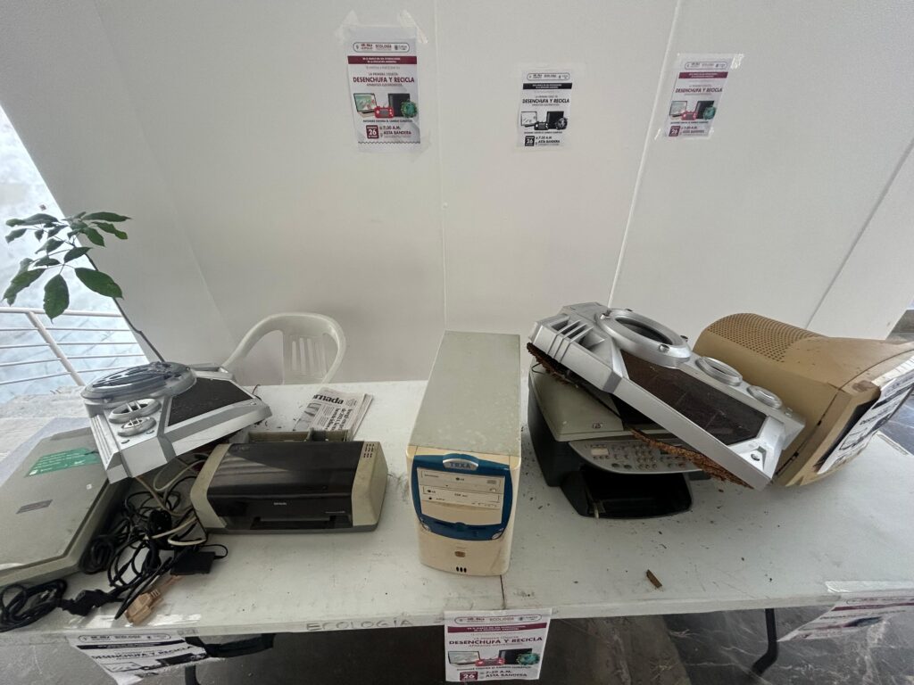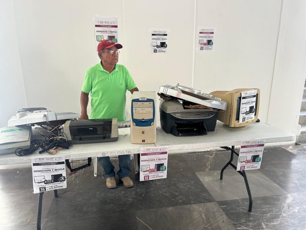 En las instalaciones del antiguo Ayuntamiento, se instaló un módulo para recibir residuos electrónicos. El director general de Ecología y Protección al Medio Ambiente, Miguel Balleza García, comentó que estos desechos no pueden ser vertidos en el relleno sanitario debido a que requieren un tratamiento especial.