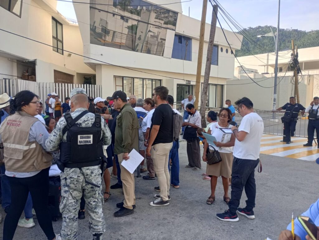 Personal de la Secretaría de Bienestar atiende en estos momentos a personas que resultaron damnificadas por el huracán Otis que no recibieron sus enseres pese a tener sus cintillos y otros que no fueron censados aún cuando resultaron afectados en sus casas ante el paso del fenómeno natural.