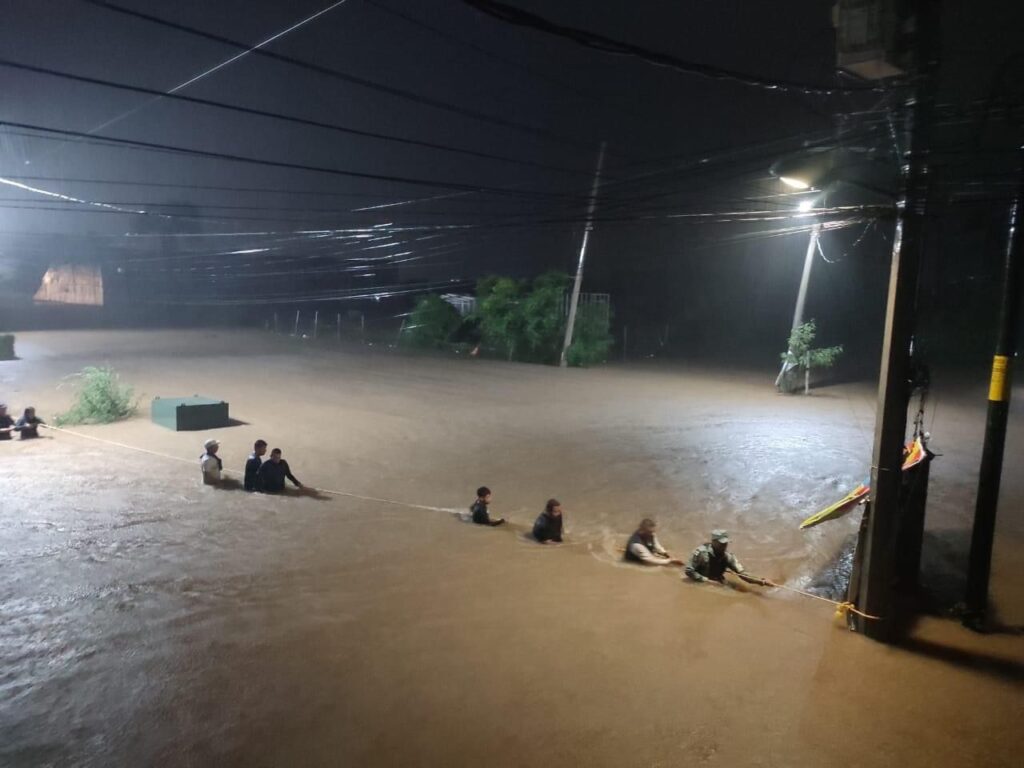 Se continúan las labores de auxilio, prevención y vigilancia en distintos puntos de dicho municipio ante las lluvias provocadas por el fenómeno meteorológico “John”.
