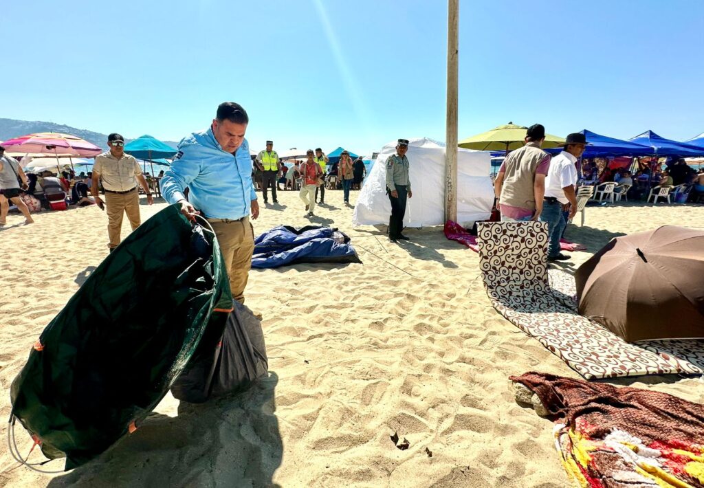 Para ofrecer una mejor imagen de Acapulco y ampliar los espacios destinados al espectáculo de pirotecnia y drones durante la celebración de Año Nuevo, el Gobierno Municipal que encabeza Abelina López Rodríguez retiró más de 20 casas de campaña instaladas en la franja de arena durante la mañana del 31 de diciembre, en un operativo coordinado que prioriza la seguridad y el orden en las playas.