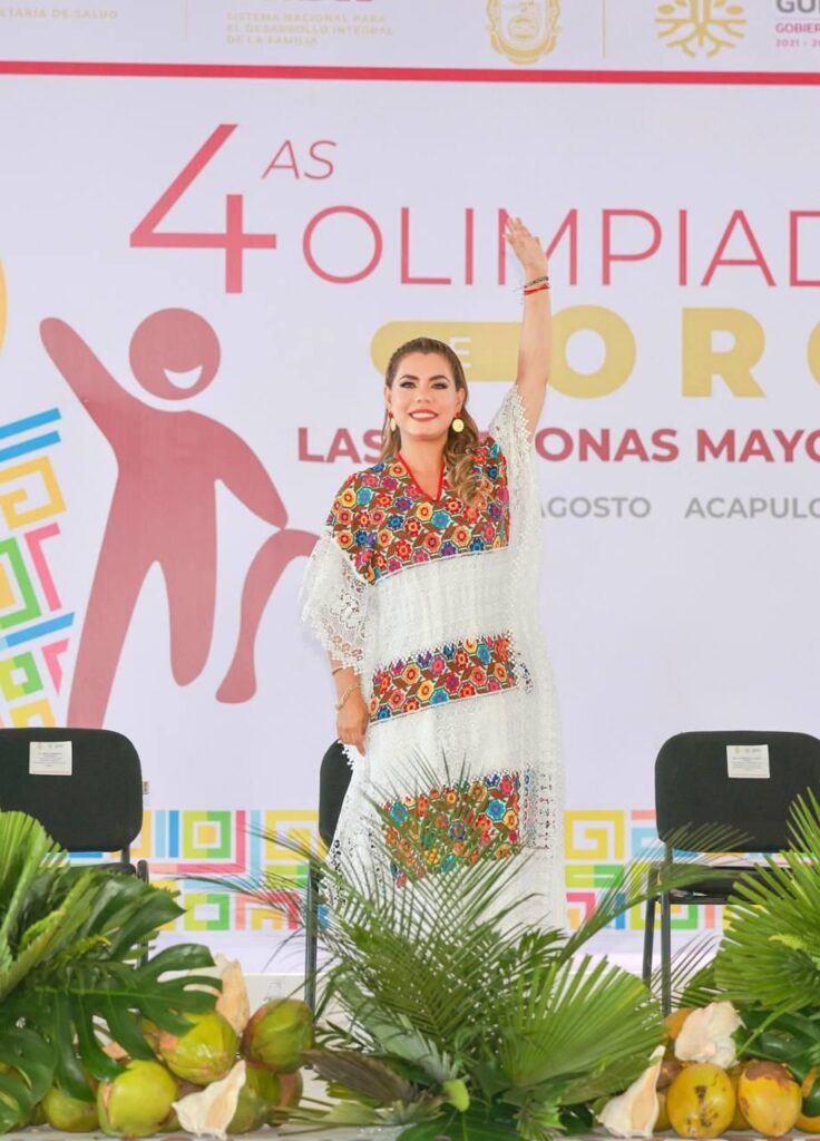 Acapulco, Gro., 19 de agosto de 2024.- La gobernadora Evelyn Salgado Pineda inauguró las actividades de las Cuartas Olimpiadas de Oro de las Personas Mayores 2024, que se desarrollan en este puerto los días 19 y 20 de agosto, en las que participan alrededor de 500 competidores, de los estados de Tlaxcala, Quintana Roo, Veracruz, Oaxaca, Morelos, Estado de México, Zacatecas, Hidalgo, Sinaloa, Michoacán, Tamaulipas, Campeche, Aguascalientes y el estado anfitrión, Guerrero.