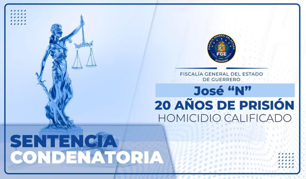 📍 #FGEGuerrero logra sentencia de 20 años en contra de José “N” por homicidio calificado de síndico en Iguala.