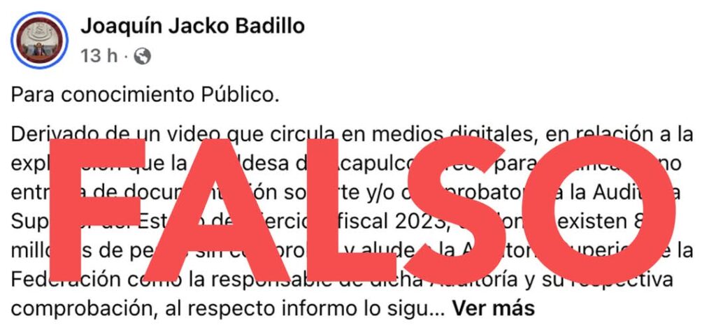 Al compañero diputado Joaquín Badillo, aclararle: la Auditoría Superior de la Federación fiscalizó los recursos federales que recibió, administró y ejerció el municipio, conforme a su programa anual de auditorías. Gracias a ello durante el año 2024 y en este 2025, el Gobierno de México que encabeza nuestra Presidenta Claudia Sheinbaum, continúa apoyando de cerca la recuperación de la ciudad y trabajando de manera conjunta, en equipo, pues hay evidencia de los resultados