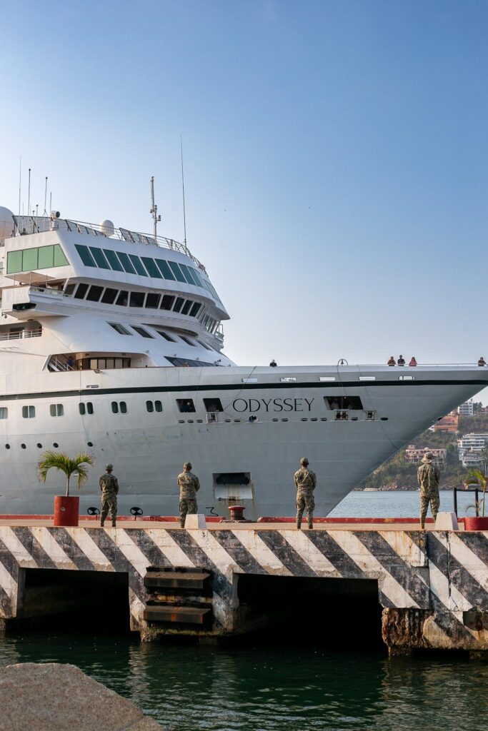 En el caso de Acapulco, alrededor de las 07:00 horas arribó a la terminal marítima la embarcación residencial “Odyssey” con bandera de Las Bahamas, registrando 468 personas a bordo, distribuidas en 250 pasajeros y 218 tripulantes, proveniente de Huatulco, Oaxaca y con dirección a Manzanillo, Colima.