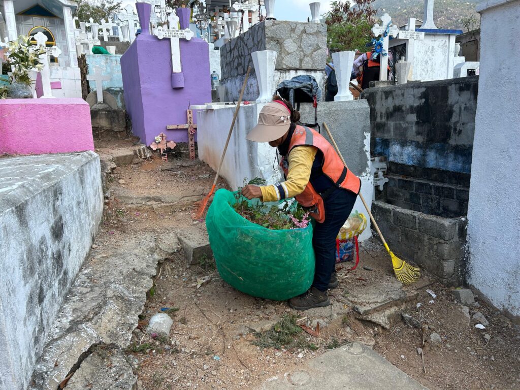 “En el panteón de La Garita hemos retirado cerca de 70 toneladas de escombro y maleza; en San Francisco, alrededor de 90 toneladas, y en El palmar, 40 toneladas. Estamos trabajando para que los camposantos estén en óptimas condiciones para recibir a los visitantes”, detalló.