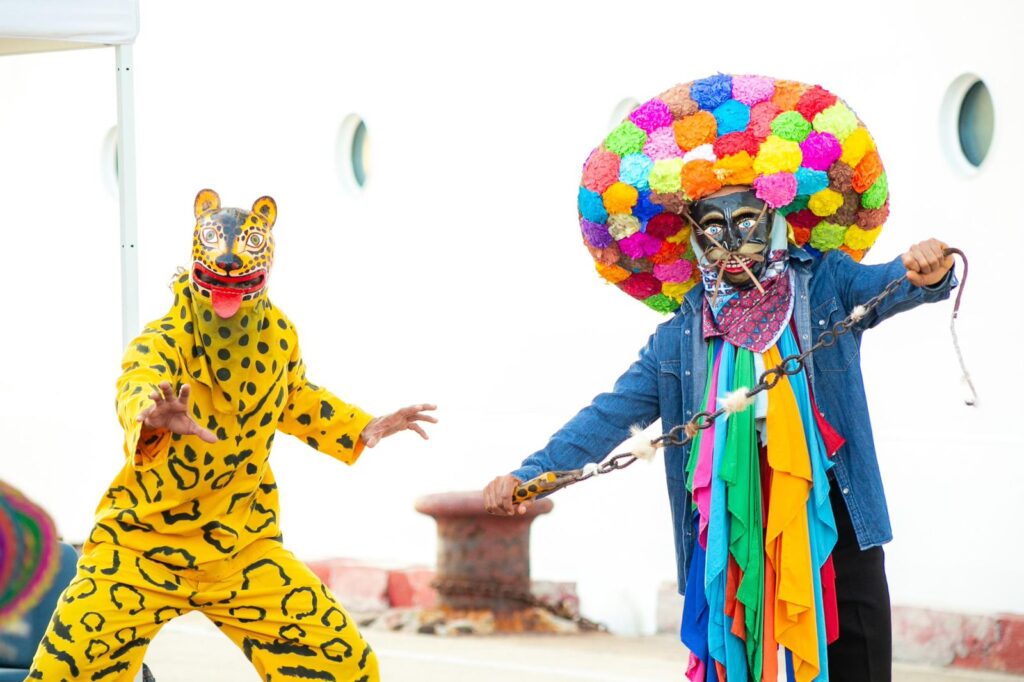 Dentro de la bienvenida que se ofreció estuvo la participación de personajes guerrerenses como el jaguar y el tlacolorero, así como la entrega de piezas artesanales.