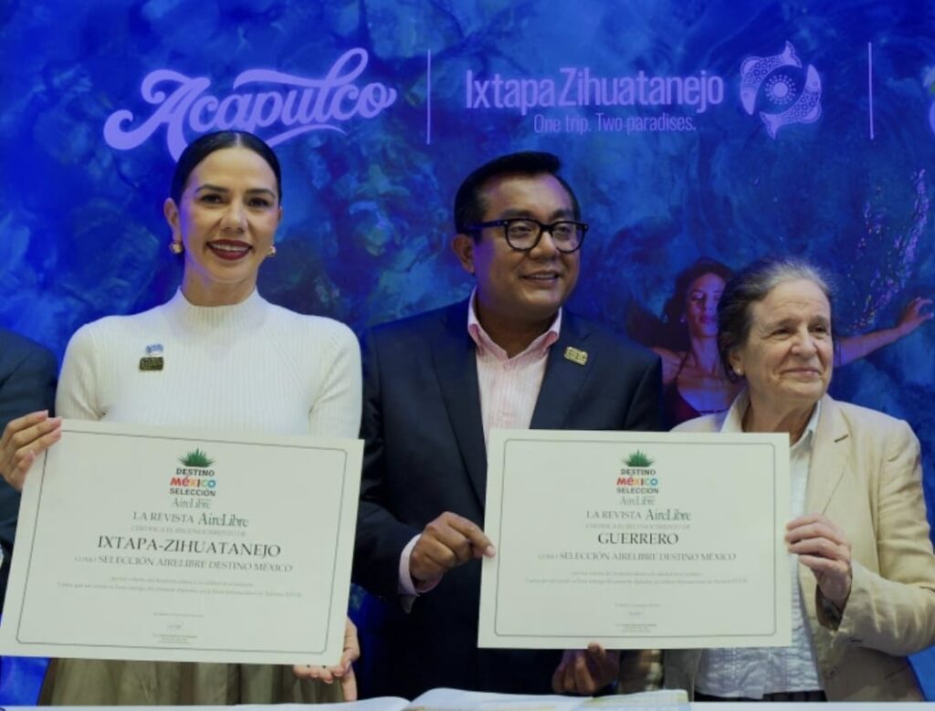 Señaló que por parte de la prestigiada revista española AireLibre, el estado recibió 4 premios por los proyectos: Guerrero, Hogar del Sol; Taxkfe, Taxco; Rinconada, Eventos & Hotel Boutique, Iguala y Zihuatanejo, Capital de la Cultura y el Deporte.