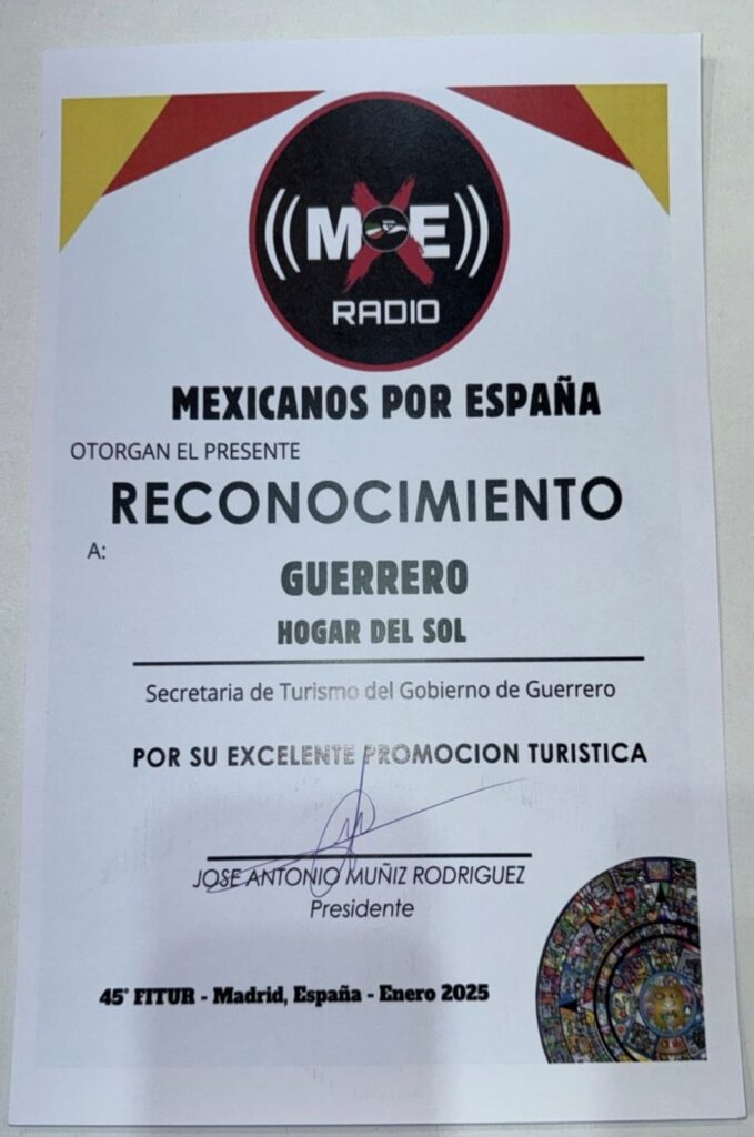 Mientras que el medio de comunicación en radio Mexicanos por España, y también la Federación Iberoamericana de Periodistas de Turismo, otorgaron a la SECTURGro reconocimientos por la campaña publicitaria “Guerrero, Hogar del Sol”, que promueve por primera ocasión los distintos municipios con vocación turística de la entidad.
