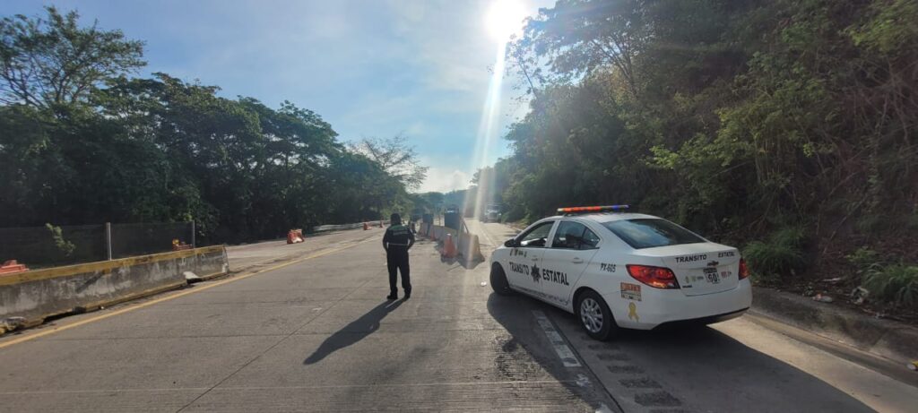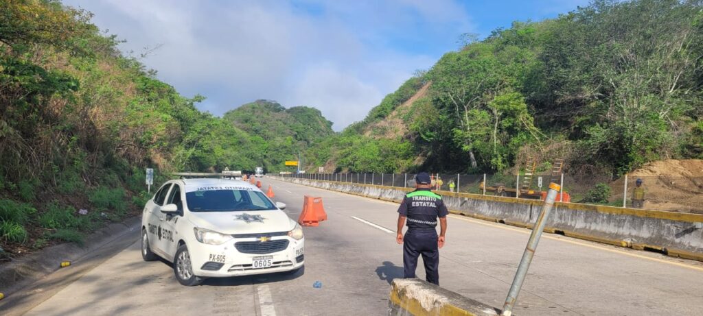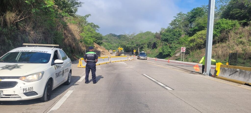 La Secretaría de Seguridad Pública de Guerrero, a través de la Dirección General de Tránsito, continúa con la vigilancia en el carril Sur-Norte del crucero de Tierra Colorada de la Autopista del Sol, para brindar apoyo vial ante el derrumbe provocado por las lluvias de las últimas horas.
