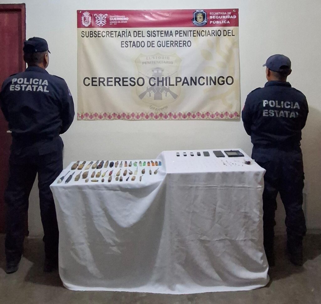 Como parte de los protocolos de vigilancia y revisiones permanentes en los Centros Penitenciarios del estado de Guerrero, la Policía Estatal aseguró objetos prohibidos en el Centro de Reinserción Social (CERESO) del municipio de Chilpancingo.