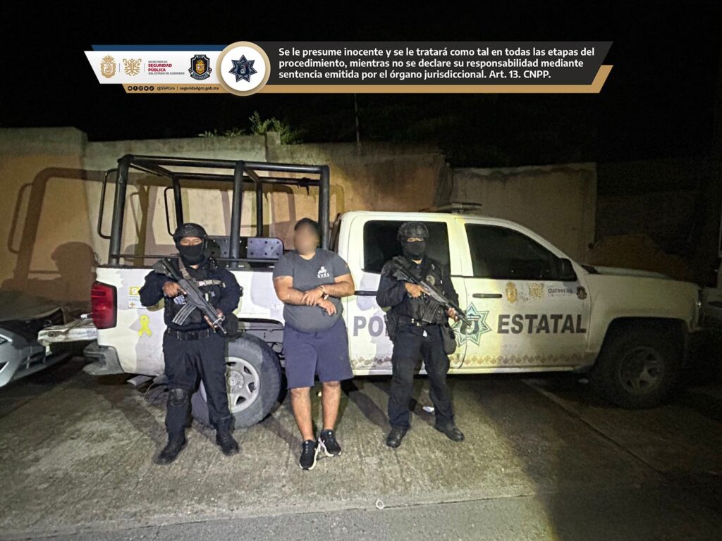 *Acapulco, Gro., 21 de septiembre de 2025. Derivado de la atención a un reporte realizado al número único de emergencias 911, elementos de la Policía Estatal detuvieron a un masculino en posesión de un arma de fuego, un cargador y cartuchos útiles.Como parte de las acciones de prevención y vigilancia que se llevan a cabo en distintos puntos del puerto de Acapulco, personal policial atendió oportunamente la denuncia ciudadana que alertaba sobre la presencia de una persona armada en la zona Diamante.Tras implementar los protocolos correspondientes, los agentes estatales localizaron al individuo, a quien se le aseguraron los siguientes objetos: • Un arma corta calibre .380 • Un cargador metálico • Siete cartuchos útiles calibre .380El hombre, junto con el armamento, fue puesto a disposición de la autoridad competente, quien determinará su situación jurídica. La Secretaría de Seguridad Pública del Estado de Guerrero reitera su compromiso de atender de manera inmediata las necesidades de la ciudadanía y exhorta a la población a denunciar cualquier situación que ponga en riesgo su integridad y la paz social.