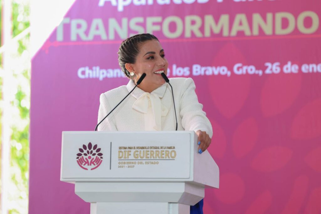 Chilpancingo, Gro., 26 enero de 2026.- La gobernadora Evelyn Salgado Pineda encabezó junto con la presidenta del Sistema DIF Guerrero, Liz Salgado Pineda, la primera entrega mensual del año 2026 de aparatos funcionales del programa Transformando Vidas, con la distribución de 409 apoyos, entre sillas de ruedas, bastones, muletas y otros dispositivos, con una inversión superior a 1.2 millones de pesos.