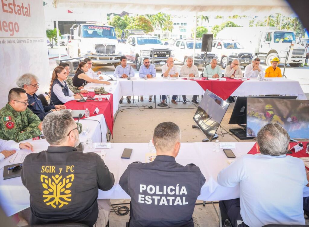 Acapulco, Gro., 29 de enero de 2025.- «En el gobierno del estado, estamos listos para hacer frente a esta próxima temporada de incendios. Hemos fortalecido los protocolos de actuación, de la Secretaría de Medio Ambiente y Recursos Naturales, de la Secretaría de Gestión Integral de Riesgos y Protección Civil, asegurando recursos para que haya un incremento en equipamiento de los compañeros, en herramientas que sean indispensables para el combate del fuego», expresó la gobernadora Evelyn Salgado Pineda durante la Primera Sesión del Comité Estatal de Manejo de Fuego.