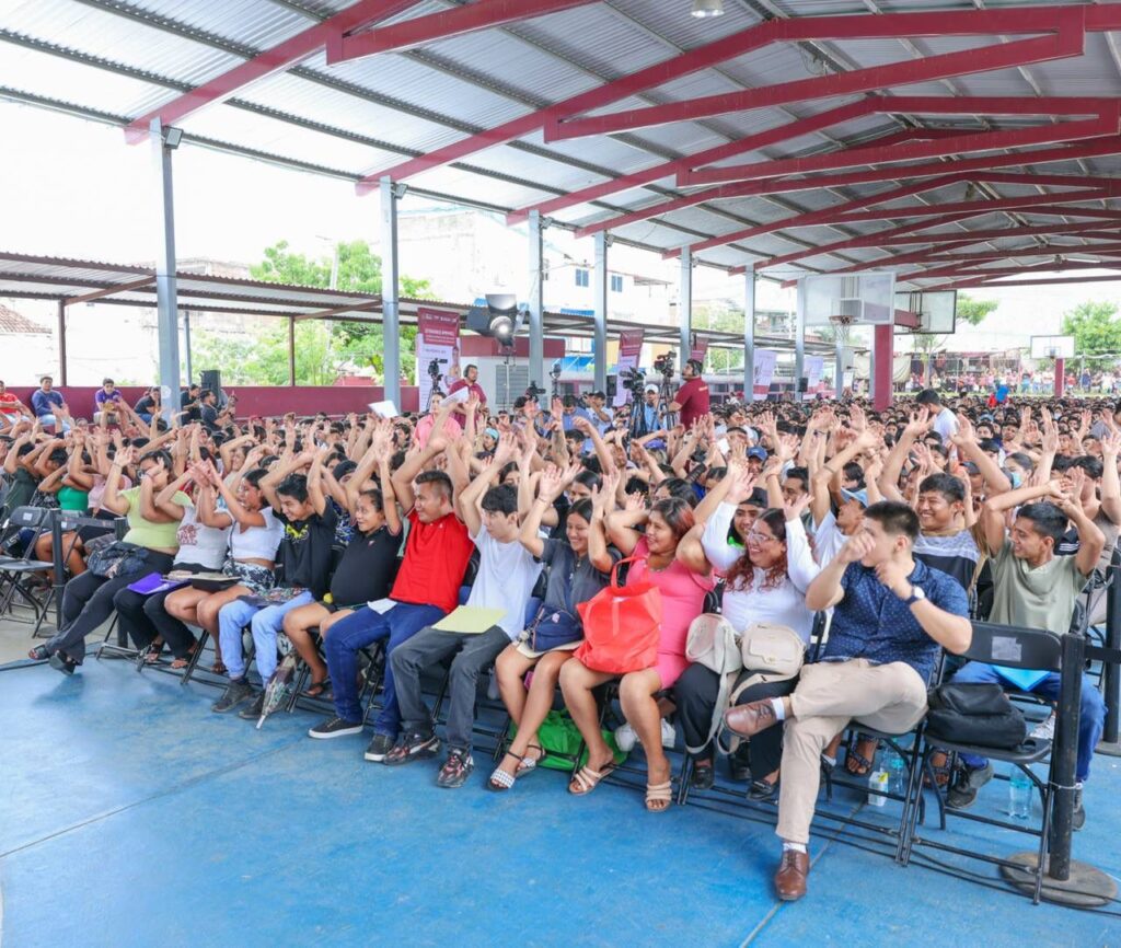 En el evento realizado en las canchas de la colonia Emiliano Zapata, la mandataria estatal agradeció el apoyo del gobierno de la presidenta Claudia Sheinbaum Pardo, para poner en marcha esta estrategia, que repercute favorablemente en la obtención de estos beneficios, que se suman a la oportunidad de tener un acercamiento entre los beneficiarios y las empresas, para impulsar la capacitación y la incursión en el ámbito laboral.