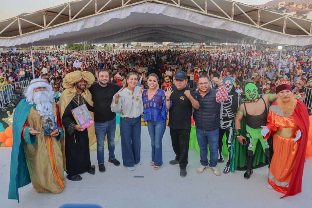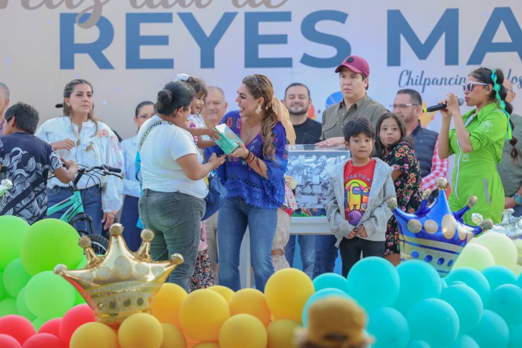 Chilpancingo, Gro., 6 de enero de 2026.– Niñas y niños de distintas colonias de Chilpancingo disfrutaron de una tarde llena de alegría y diversión junto con la gobernadora Evelyn Salgado Pineda y la presidenta del Sistema DIF Guerrero, Liz Salgado Pineda, para celebrar el Día de Reyes en las conocidas canchas de la Galeana.