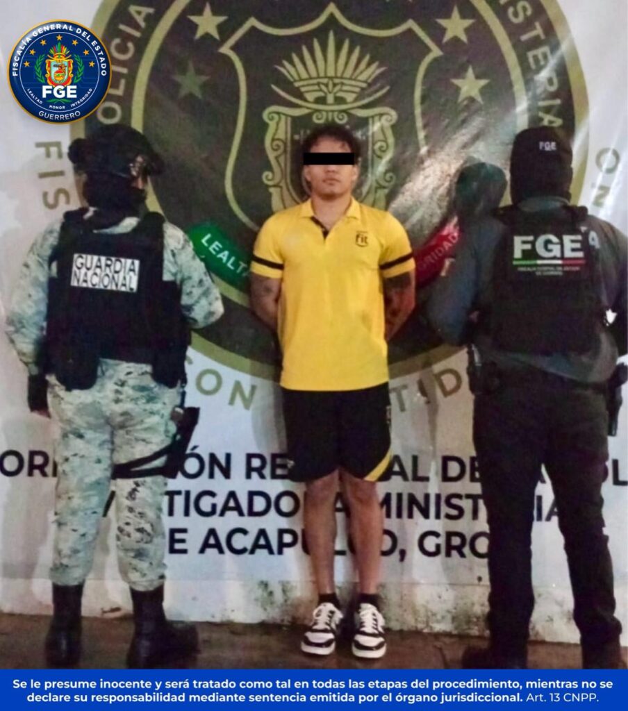 Chilpancingo, Gro. a 13 de junio de 2025.- La Fiscalía General del Estado de Guerrero (FGE Guerrero), en coordinación con elementos de la Secretaría de la Defensa Nacional (DEFENSA), Guardia Nacional (GN), Secretaría de Seguridad y Protección Ciudadana (SSPC) y Secretaría de Seguridad Pública del Estado de Guerrero (SSPGro), cumplimentó una orden de aprehensión en contra de Kareem Alejandro “N”, por su probable responsabilidad en el delito de violación equiparada agravada, en agravio de una víctima de identidad reservada en la ciudad de Acapulco.