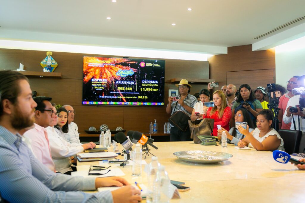 En conferencia de prensa, acompañado de representantes del sector turístico de Guerrero, el funcionario estatal informó que los destinos de El Hogar del Sol obtuvieron una ocupación hotelera de 76.04 por ciento en promedio general, siendo el primero de enero del 2025 el día con mayor índice de hospedería al alcanzar 94.6 por ciento.