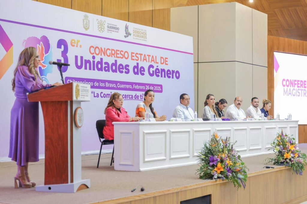 Chilpancingo, Gro., 26 de febrero de 2025. – La gobernadora Evelyn Salgado Pineda inauguró el Tercer Congreso Estatal de Unidades de Género, donde reafirmó su compromiso con las mujeres guerrerenses y destacó la importancia de colocar la perspectiva de género en el centro de las decisiones políticas, sociales y económicas.