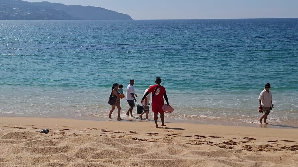Acapulco, Guerrero, 24 de enero de 2026.- Ante el oleaje moderado registrado en el puerto, la Policía Turística refuerza operativos de vigilancia en playas y accesos, con patrullajes permanentes y presencia estratégica en zonas de mayor afluencia, con el objetivo de proteger a turistas y residentes.