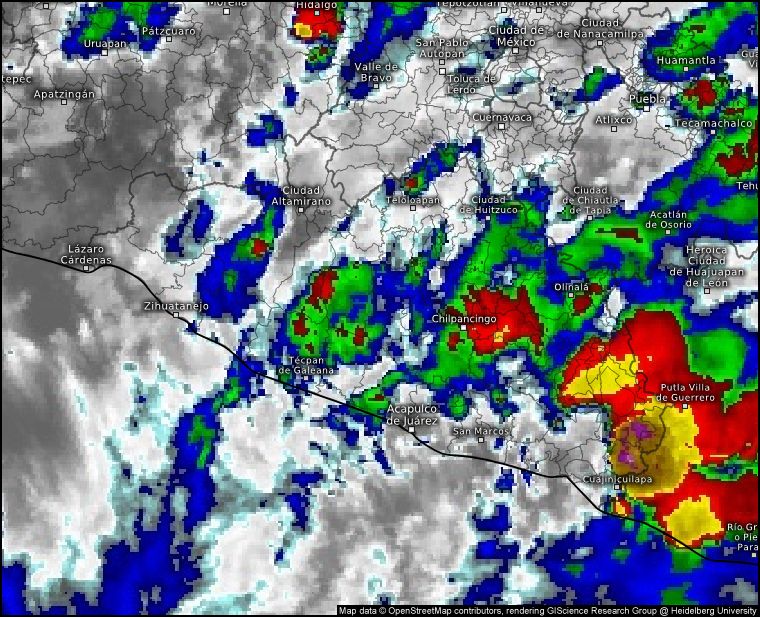 Chilpancingo, Gro., 27 de mayo de 2025.- La Secretaría de Gestión Integral de Riesgos y Protección Civil prevé la ocurrencia de lluvias de variada intensidad durante las próximas horas, derivado de los desprendimientos nubosos generados por una zona de Baja Presión con potencial ciclónico, que la tarde de este martes se localiza frente a las costas de Guerrero.
