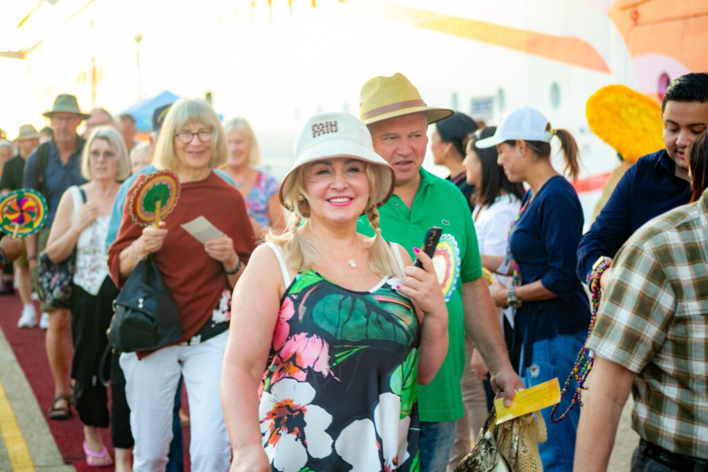 El titular de la Secretaría de Turismo en la entidad recibió a los cruceristas, quienes disfrutaron de un ambiente guerrerense con música típica y souvenirs, mostrando su emoción al conocer el puerto de Acapulco.
