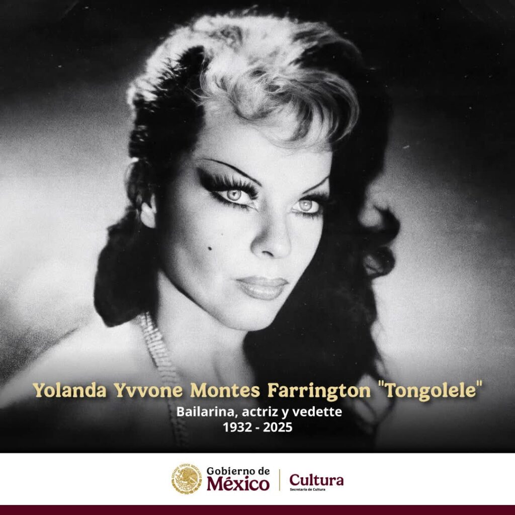 La Secretaría de Cultura del Gobierno de México lamenta el fallecimiento de Yolanda Yvvone Montes Farrington, mejor conocida como “Tongolele”, bailarina, actriz y figura importante en la Época de Oro del cine mexicano.