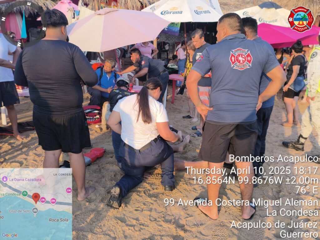 Acapulco, Gro., 10 de abril de 2025.- En respuesta al llamado ciudadano, el Gobierno Municipal que preside Abelina López Rodríguez a través de la Coordinación General de Protección Civil y Bomberos rescató a tres personas en playa Condesa.